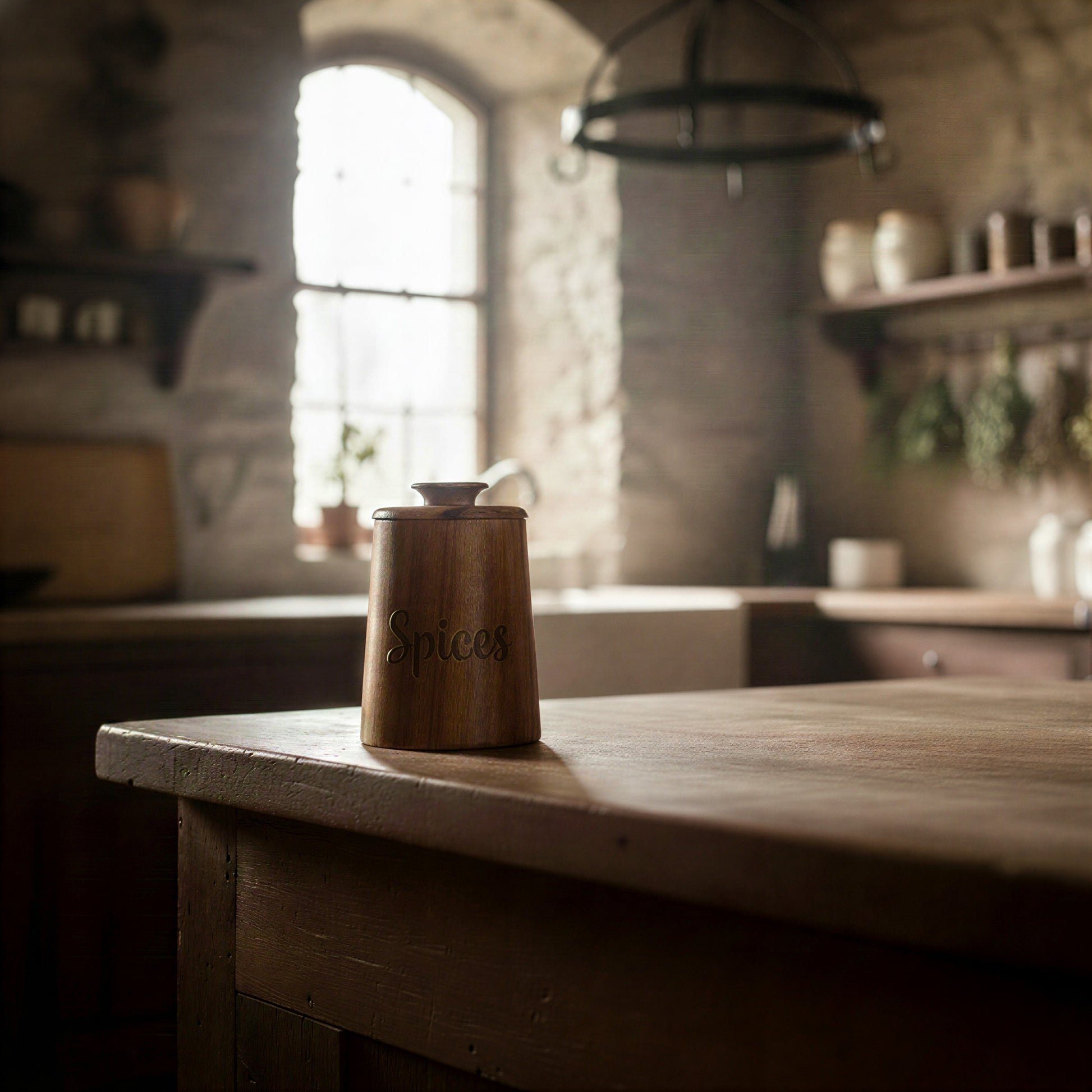 Elevate your kitchen aesthetic with the De Madera Spices Trio Set — three handcrafted spice jars made from premium natural sarsoua wood. Each piece is finished with pure olive oil for a smooth, elegant sheen that blends functionality with luxury. Their warm tone, organic texture, and boho-premium look make them both a practical storage solution and a decorative statement.